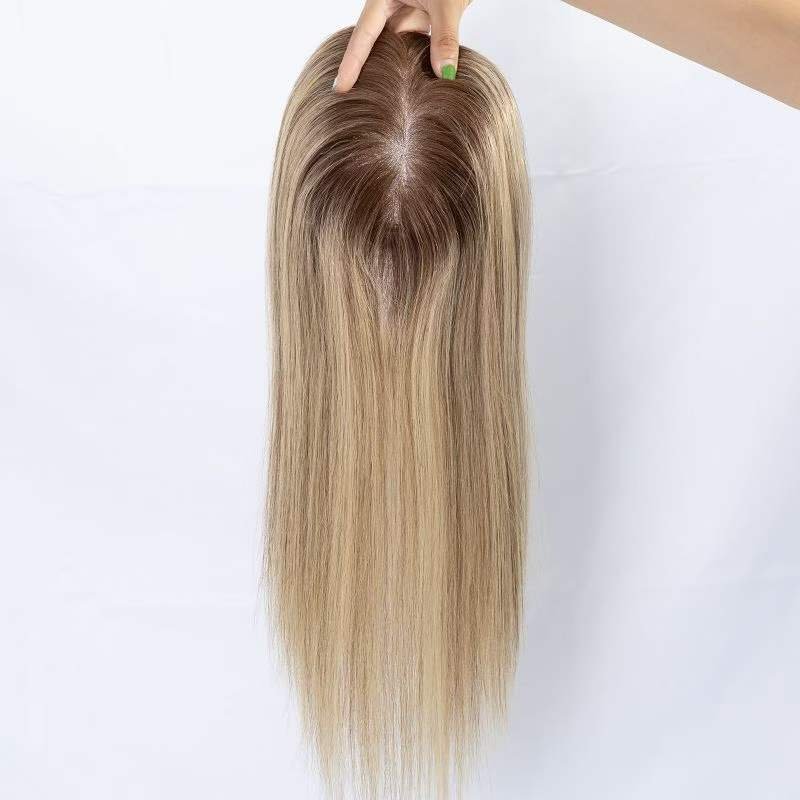 Human Hair Topper Brown Balayage Color Short Hair Length 5×6.5 Size Mono Base Topper